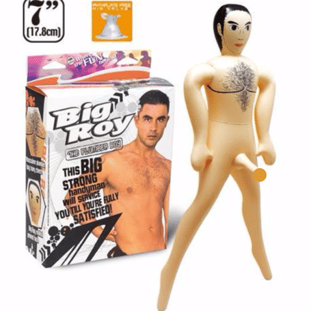 Big Roy, 17.8 cm boyunda sert bir penise sahip, göğsü kıllı, baskı yüz ve saçlara sahip son derece ateşli bir latin erkek şişme bebektir.